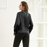 Silk Blouses For Women 100% Stand Collar Office Silk Shirts - Black