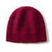 Add a bold touch to your winter look with this 100% pure cashmere beanie, crafted in a striking deep red with fine horizontal knit accents and a distinctive chevron border pattern. Ultra-soft and breathable, this hat offers luxurious warmth while showcasing an elegant design. Perfect as a statement accessory, it blends classic cashmere comfort with modern geometric style.