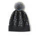 Womens Cashmere Beanie with Fur Pom Patterned Cashmere Hat Ribbed Hem