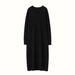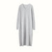 Featuring a flattering V-neckline and long fitted sleeves, this dress offers a timeless silhouette perfect for any occasion. The soft knit fabric provides warmth and a luxurious feel, while the midi length adds a touch of sophistication. The straight-cut design ensures a comfortable yet polished fit, making it ideal for both casual outings and formal gatherings.