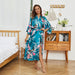 Womens Silk Kimono Peacock and Floral Print Kimono Silk Long Silk Robe