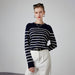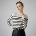 Elevate your everyday wardrobe with this cashmere sweater, designed for effortless elegance and comfort. Crafted from 35% cashmere, it offers a luxuriously soft touch and lightweight warmth. The timeless horizontal stripe pattern adds a chic nautical vibe, while the crew neckline and long sleeves keep it versatile for layering or wearing on its own.